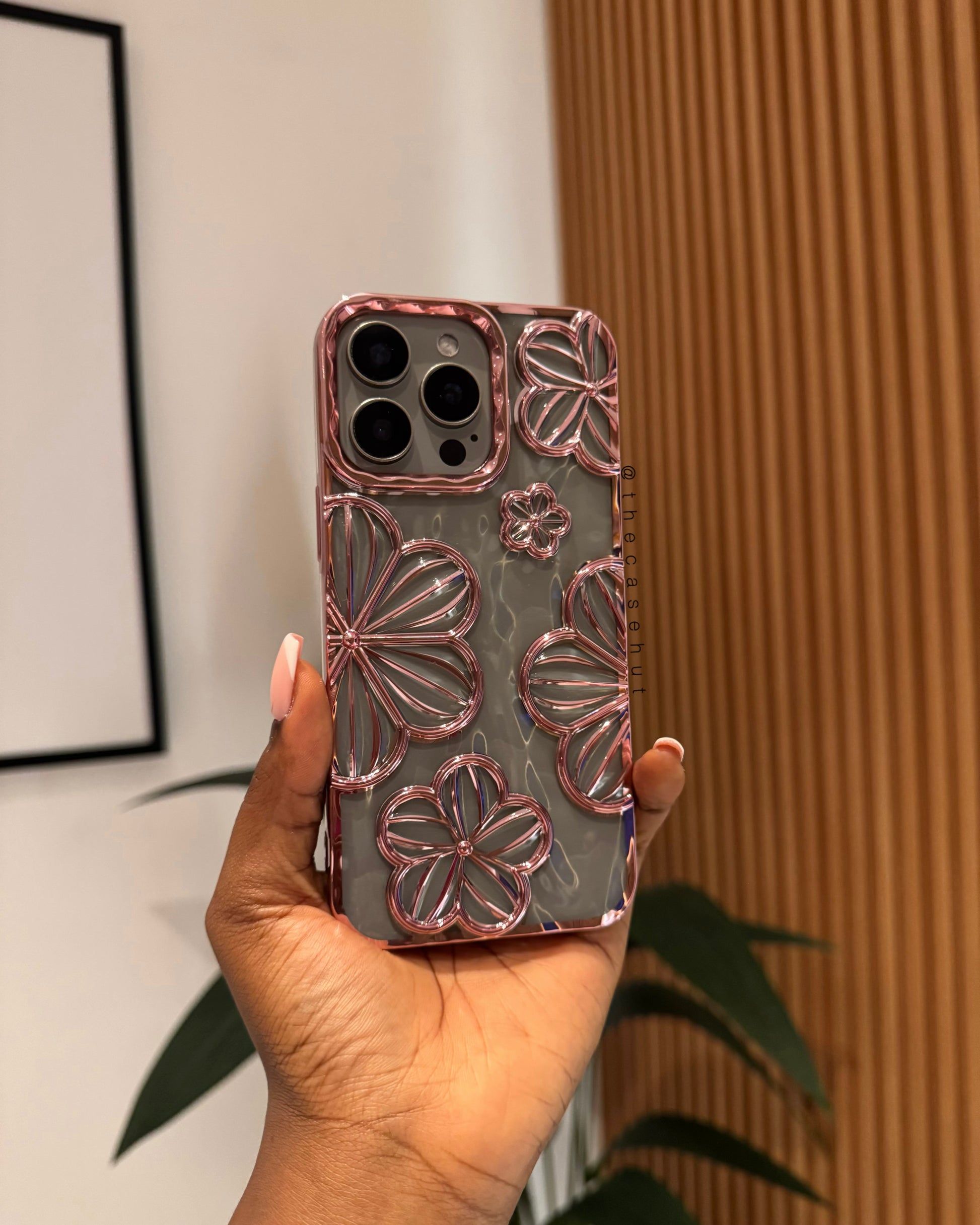 Tranparent case with 3D floral design, comes with a removable shiny paper.